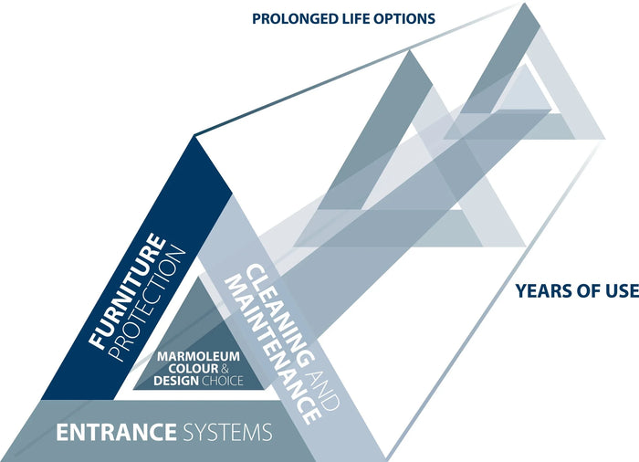 When you consider all the elements of the triangle below, Marmoleum with Topshield pro will do the rest.